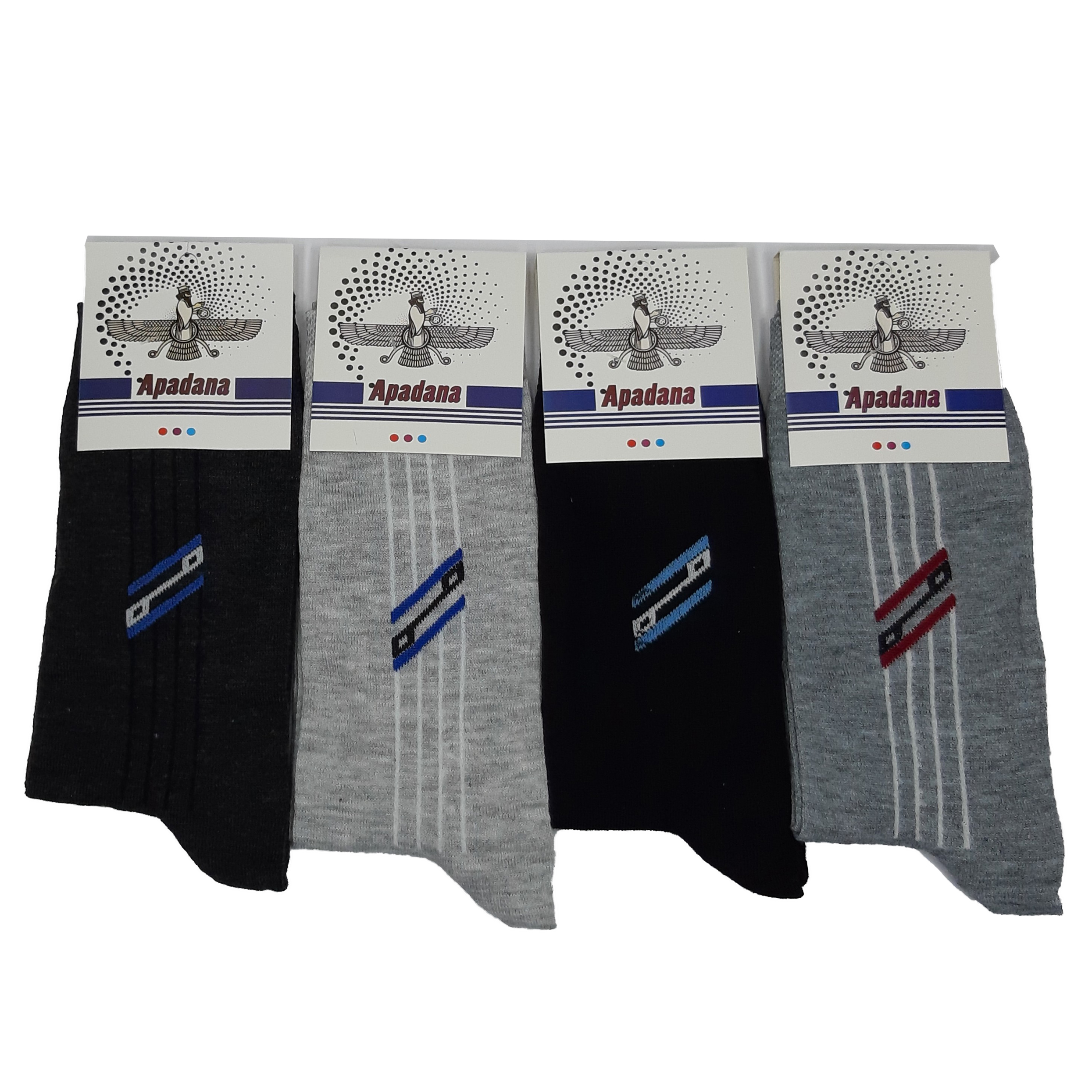 این محصول جوراب مردانه تولیدی آپادانا طرح 3 خط است و از جنس نخ تهیه شده و دارای کشسانی و ضخامت خوبی است .این محصول در بسته چهار جفتی در رنگهای مشکی، دودی، طوسی روشن و طوسی سیر بسته بندی شده و فری سایز است.شما می توانید با کلیک بر روی لینک (( جوراب مردانه )) مدلهای دیگر و لینک (( جوراب مجموعه پاسارگاد )) رنگهای دیگر و تنوع های مختلف این محصول را مشاهده کنید.