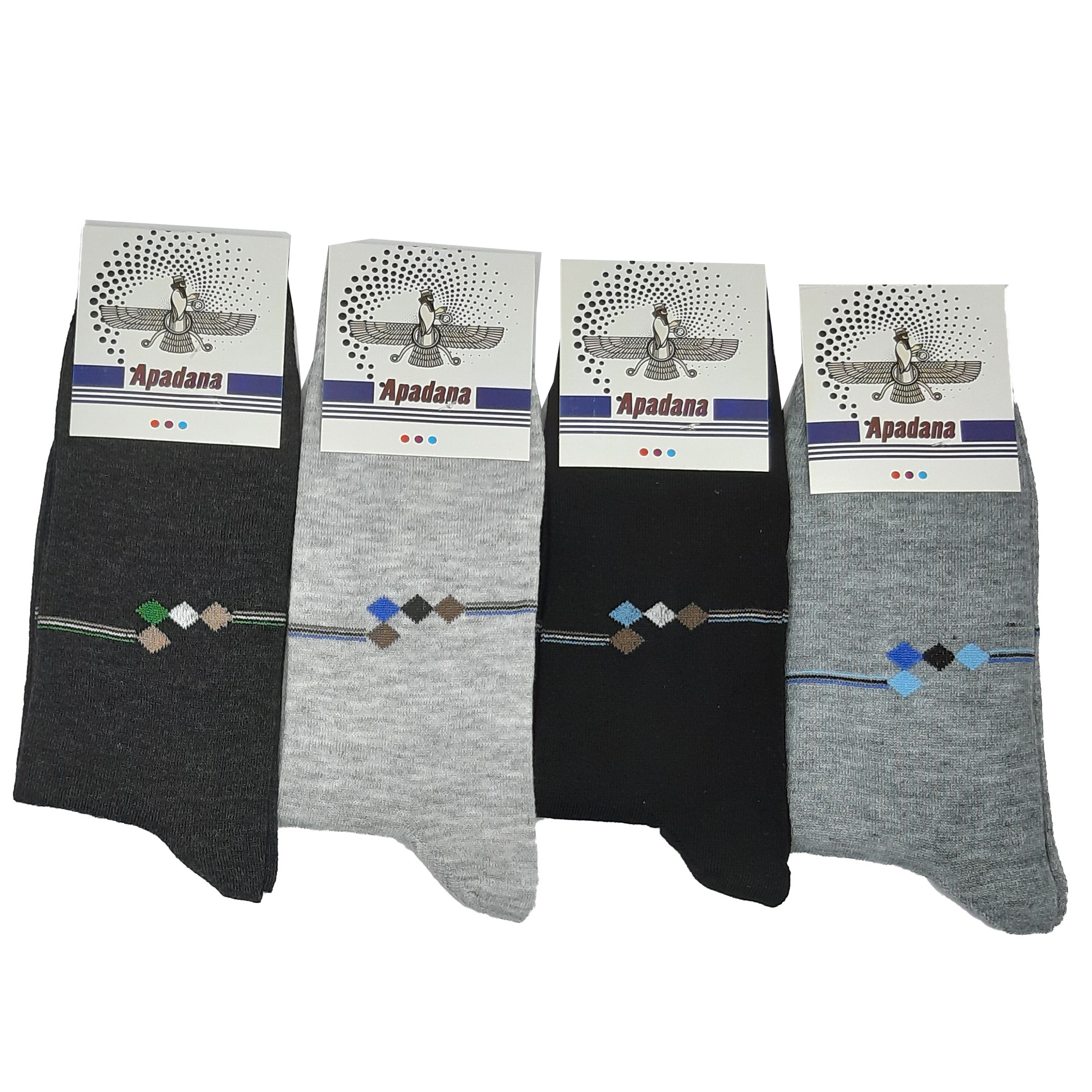 این محصول جوراب مردانه تولیدی آپادانا طرح دو خط است و از جنس نخ تهیه شده و دارای کشسانی و ضخامت خوبی است .این محصول در بسته چهار جفتی در رنگهای مشکی، دودی، طوسی روشن و طوسی سیر بسته بندی شده و فری سایز است.شما می توانید با کلیک بر روی لینک (( جوراب مردانه )) مدلهای دیگر و لینک (( جوراب مجموعه پاسارگاد )) رنگهای دیگر و تنوع های مختلف این محصول را مشاهده کنید.