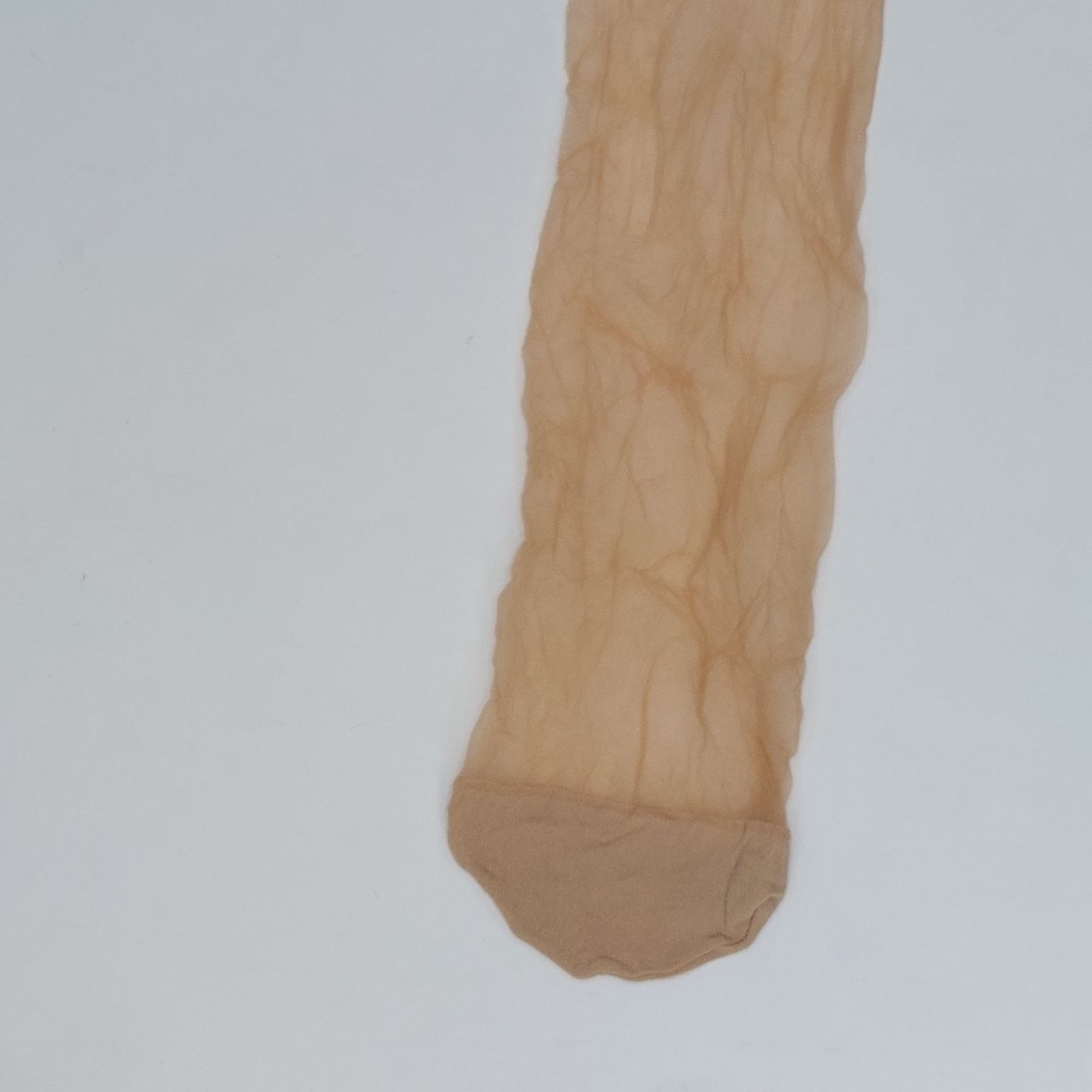 این محصول از یکی از بهترین برندهای ایرانی است. سایز دو ربع و کفه دار ضخامت آن شیشه ای است. از این کالا ظریف تر هم موجود است. جنس جوراب از جنس پرولن و دارای کشسانی زیادی است. کفه دار بودن جوراب باعث افزایش طول عمر جوراب می گردد. قد جوراب بالای زانو است. با توجه به ضخامت شیشه ای و کش بالای آن مناسب سایز بالا نیست.شما می توانید با کلیک بر روی لینک (( جوراب زنانه )) مدلهای دیگر و لینک (( جوراب شیشه ای قد زانو )) رنگهای دیگر و تنوع های مختلف این محصول را مشاهده کنید.