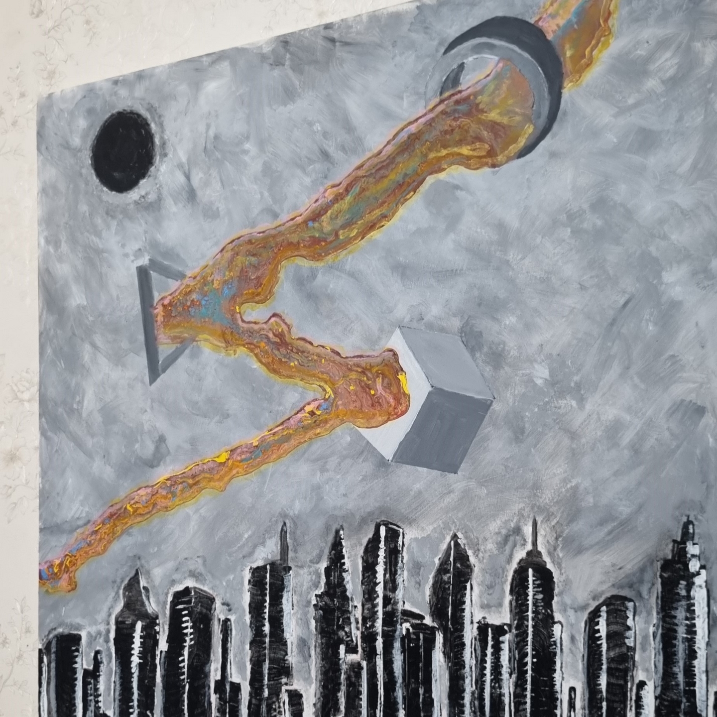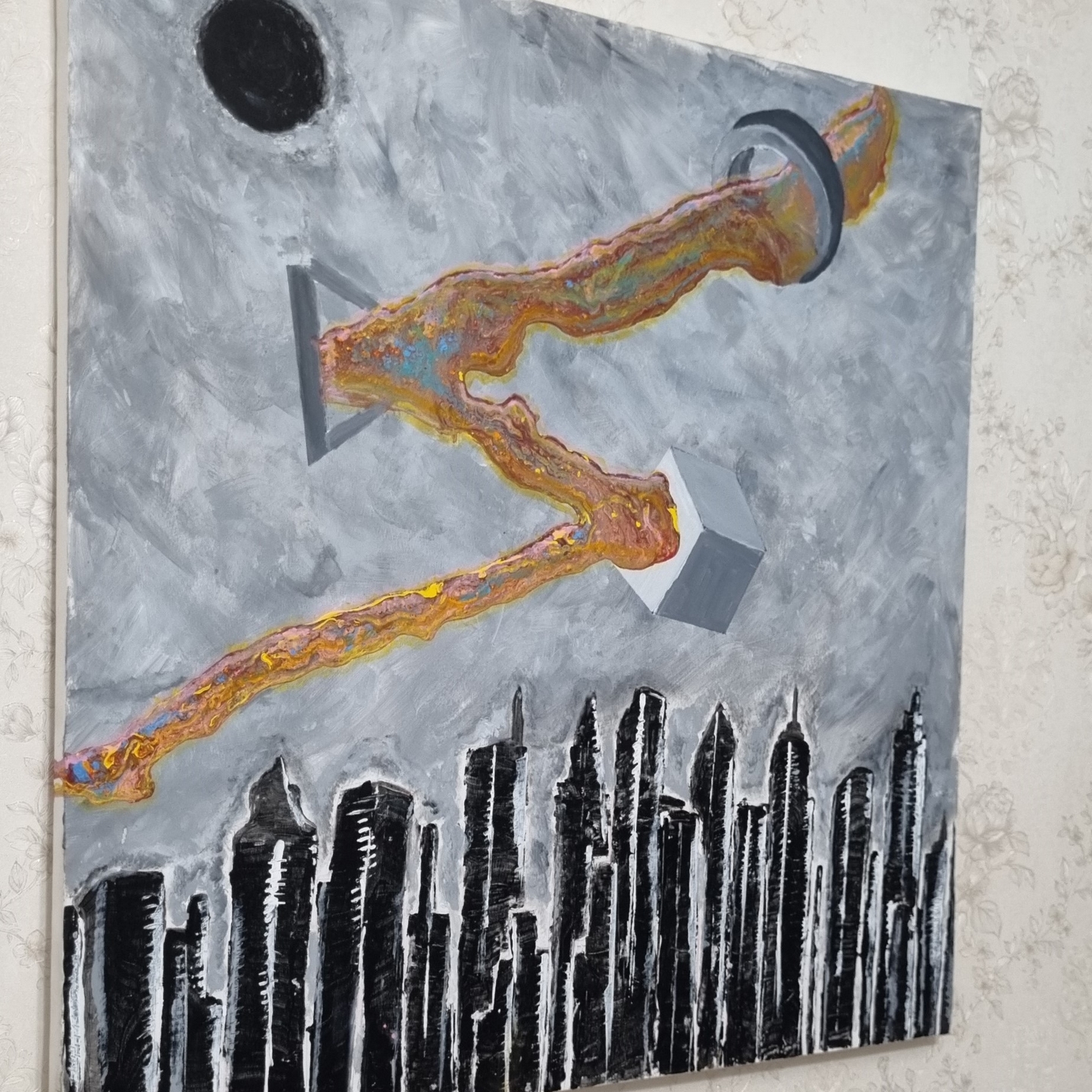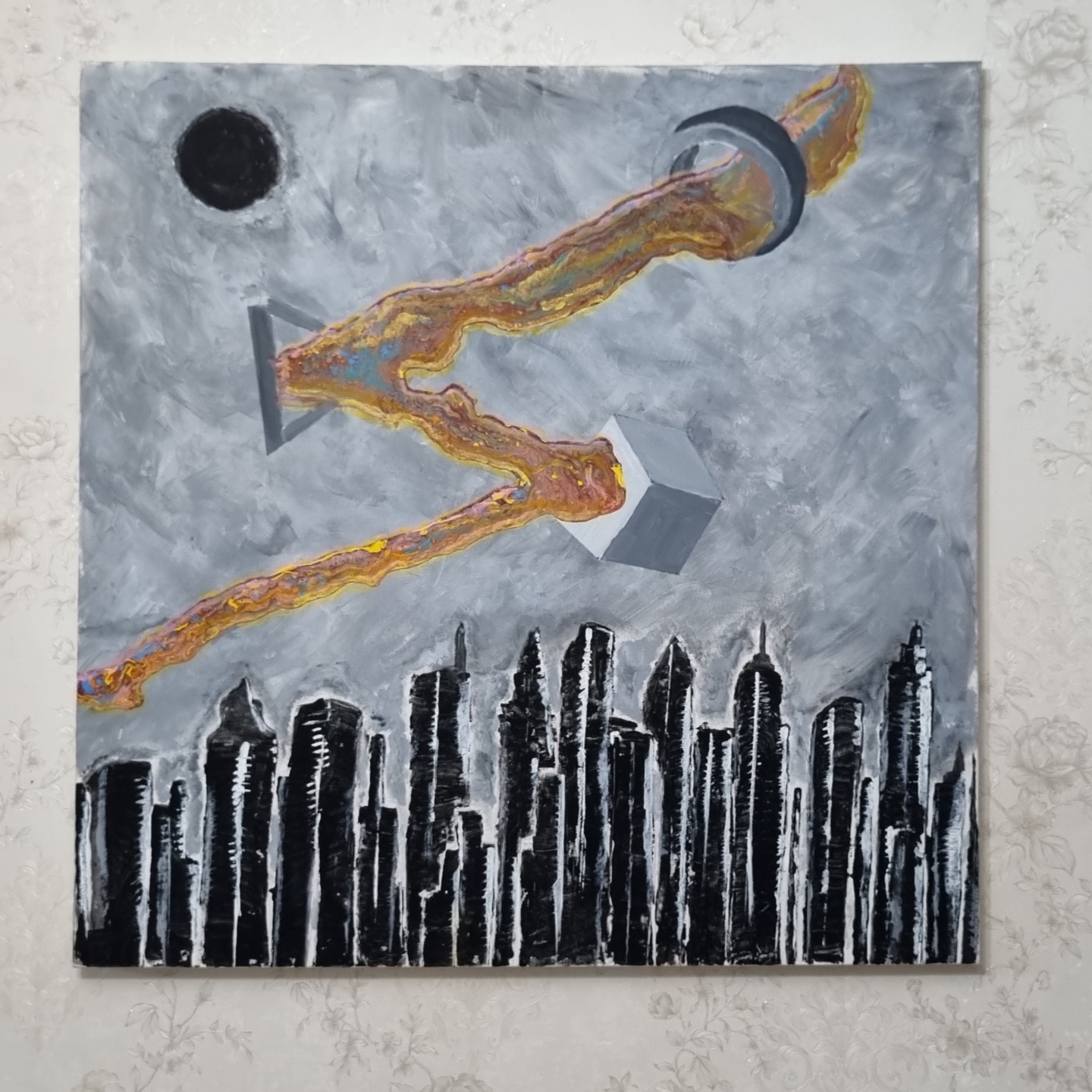 این تابلو نقاشی اکریلیک به نام شهر2 به سبک ابستره و سورئال کشیده شده .این تابلو در ابعاد 80 در 80 سانتیمتر و عمق معمولی موجود است و همچنین تک نسخه ای است .بوم این تابلو و مواد به کار رفته با کیفیت است و با بسته بندی مناسبی ارسال می گردد .خالق این اثر هنرمند علیرضا سالمیان است.در پایان کار برای جلوه بیشتر و دوام تابلو و قابلیت تمیز کردن از وارنیش مات استفاده شده