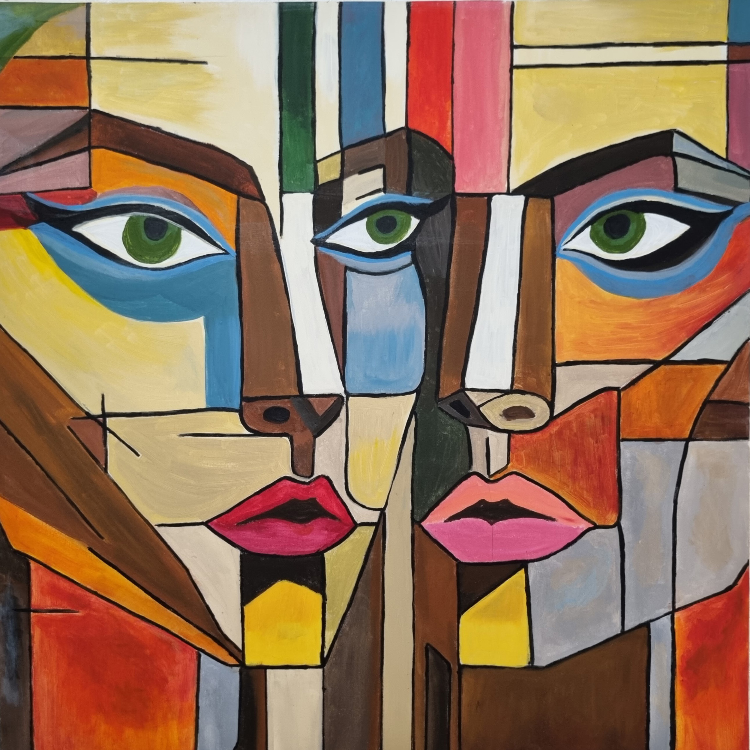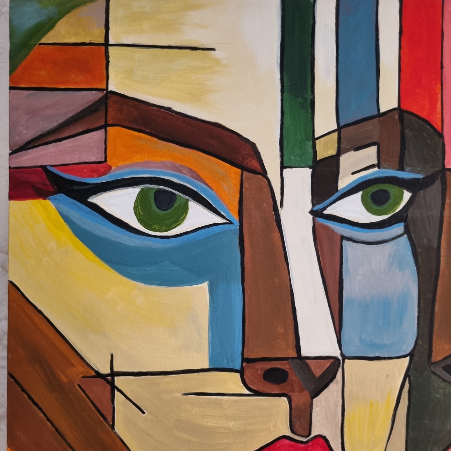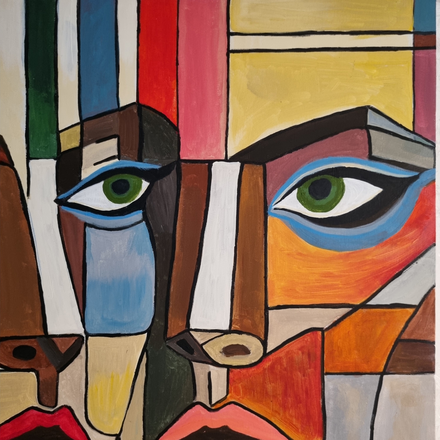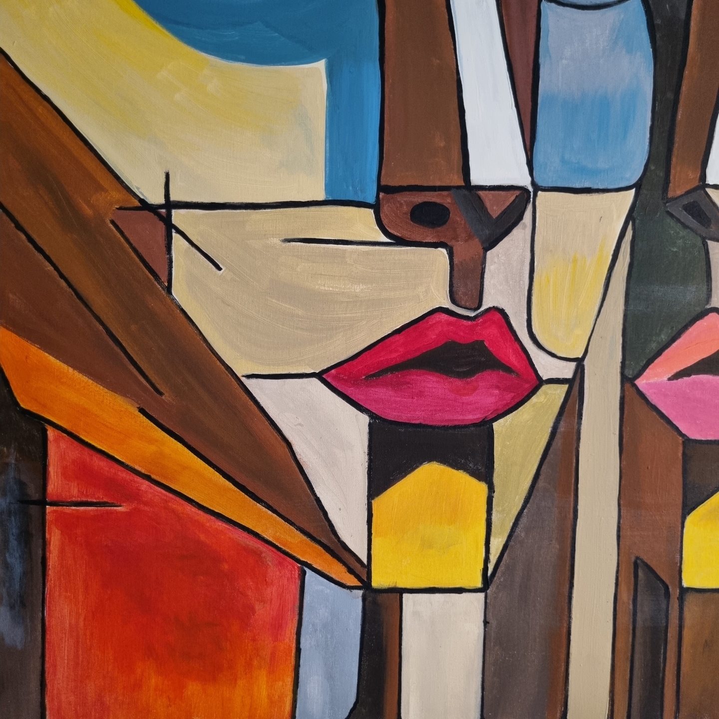 این تابلو نقاشی اکریلیک به نام دو صورت به سبک آبستره کشیده شده .این  تابلو در ابعاد 80 در 80 سانتیمتر و عمق معمولی موجود است و همچنین تک نسخه  ای است .بوم این تابلو و مواد به کار رفته با کیفیت است و با بسته بندی  مناسبی ارسال می گردد .خالق این اثر هنرمند علیرضا سالمیان است.در پایان  کار برای جلوه بیشتر و دوام تابلو و قابلیت تمیز کردن از وارنیش مات  استفاده شده