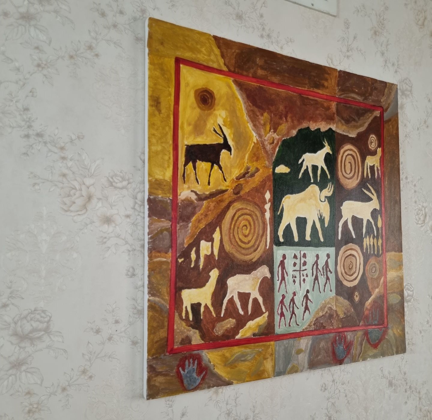 این تابلو نقاشی اکریلیک به نام غار باستان مدرن به سبک آبستره کشیده شده .این تابلو در ابعاد 80 در 80 سانتیمتر و عمق معمولی موجود است و همچنین تک نسخه ای است .بوم این تابلو و مواد به کار رفته با کیفیت است و با بسته بندی مناسبی ارسال می گردد .خالق این اثر هنرمند علیرضا سالمیان است.در پایان کار برای جلوه بیشتر و دوام تابلو و قابلیت تمیز کردن از وارنیش براق استفاده شده است