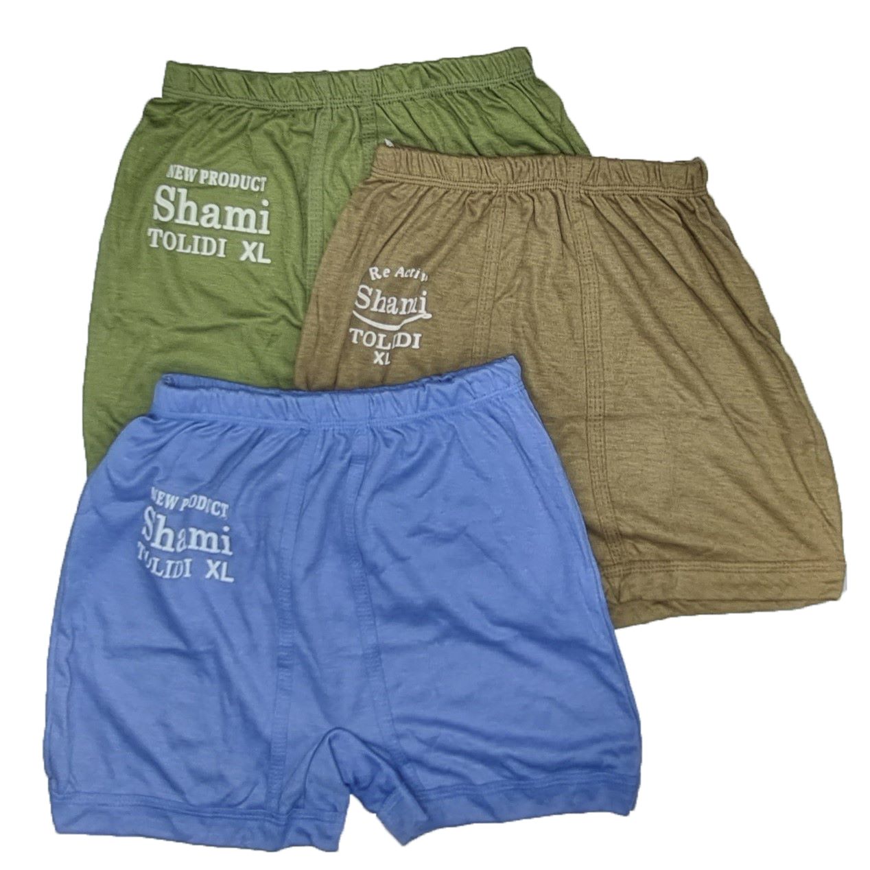 این شورت محصول تولیدی شامی است که از نخ پنبه با کیفیت تولید شده که باعث احساس راحتی و عدم حساسیت و عدم تعریق میگردد. دور کمر آن هم با کش زیادی می آید و دور دهن پای آن هم دوخت تنها و بدون کش است که باعث اذیت نمی شود.این محصول بسته 3 عددی در رنگهای سبز و آبی و قهوه ای و از سایز 42 تا 60 موجود است جدول سایزبندی به خرید شما کمک می کند.شما می توانید با کلیک بر روی لینک (( شورت مردانه )) مدلهای دیگر و لینک (( شورت شامی )) رنگهای دیگر و تنوع های مختلف این محصول را مشاهده کنید.