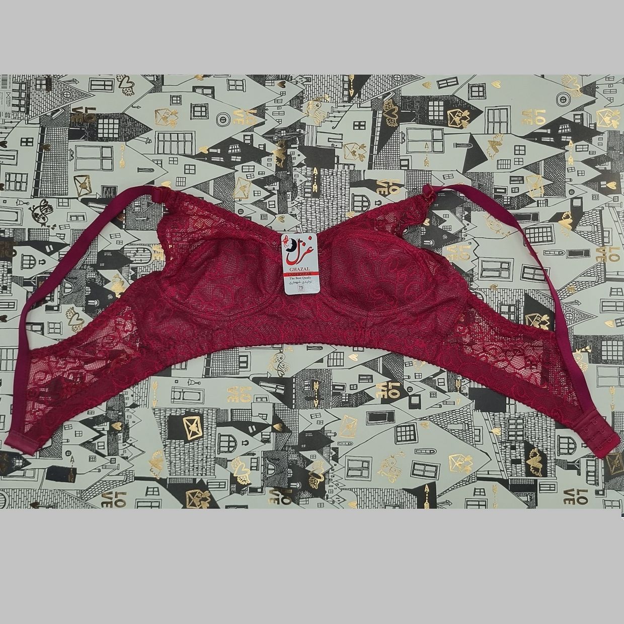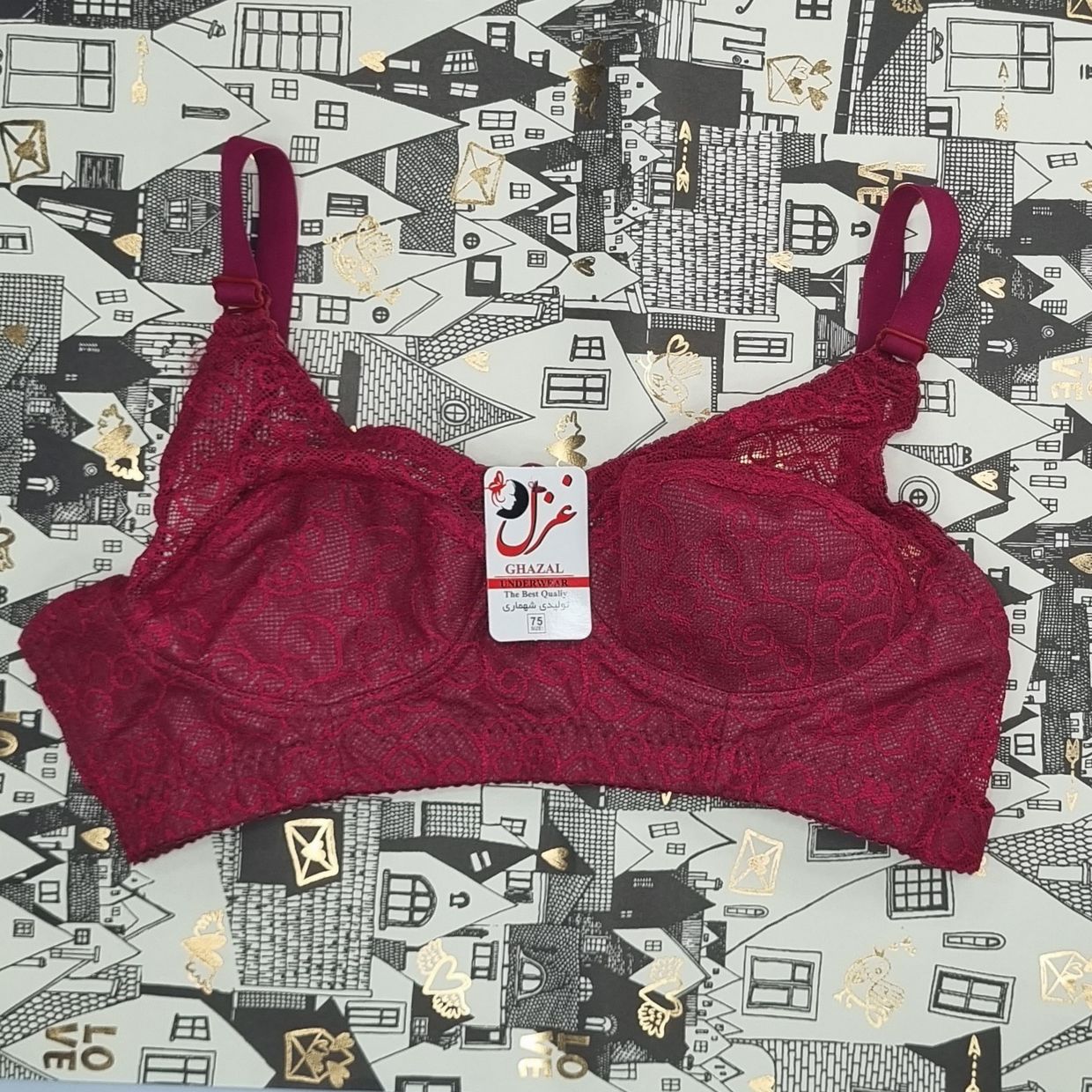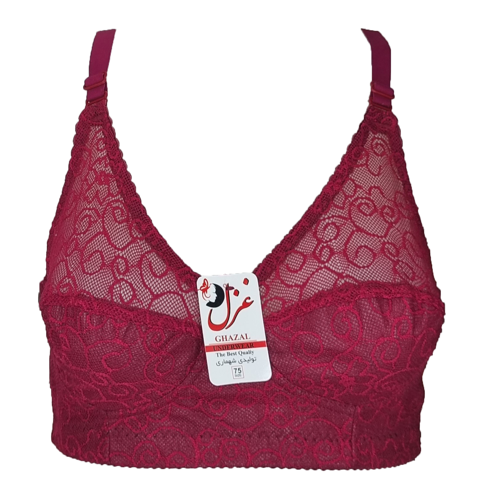 این سوتین مدل دانتل زیر نخ فانتزی از برند غزل است. بالای دانتل کاپ بدون آستر است و از بهترین و با کیفیت ترین مواد در آن به کار رفته و تن خوری زیبا و عالی دارد. بالای و دور کاپ سوتین به جهت زیبایی و دوام بیشتر دوخت شده است.این محصول رنگ قرمز سیر است و در سایزهای 75.80.85.90 بسته بندی شده است