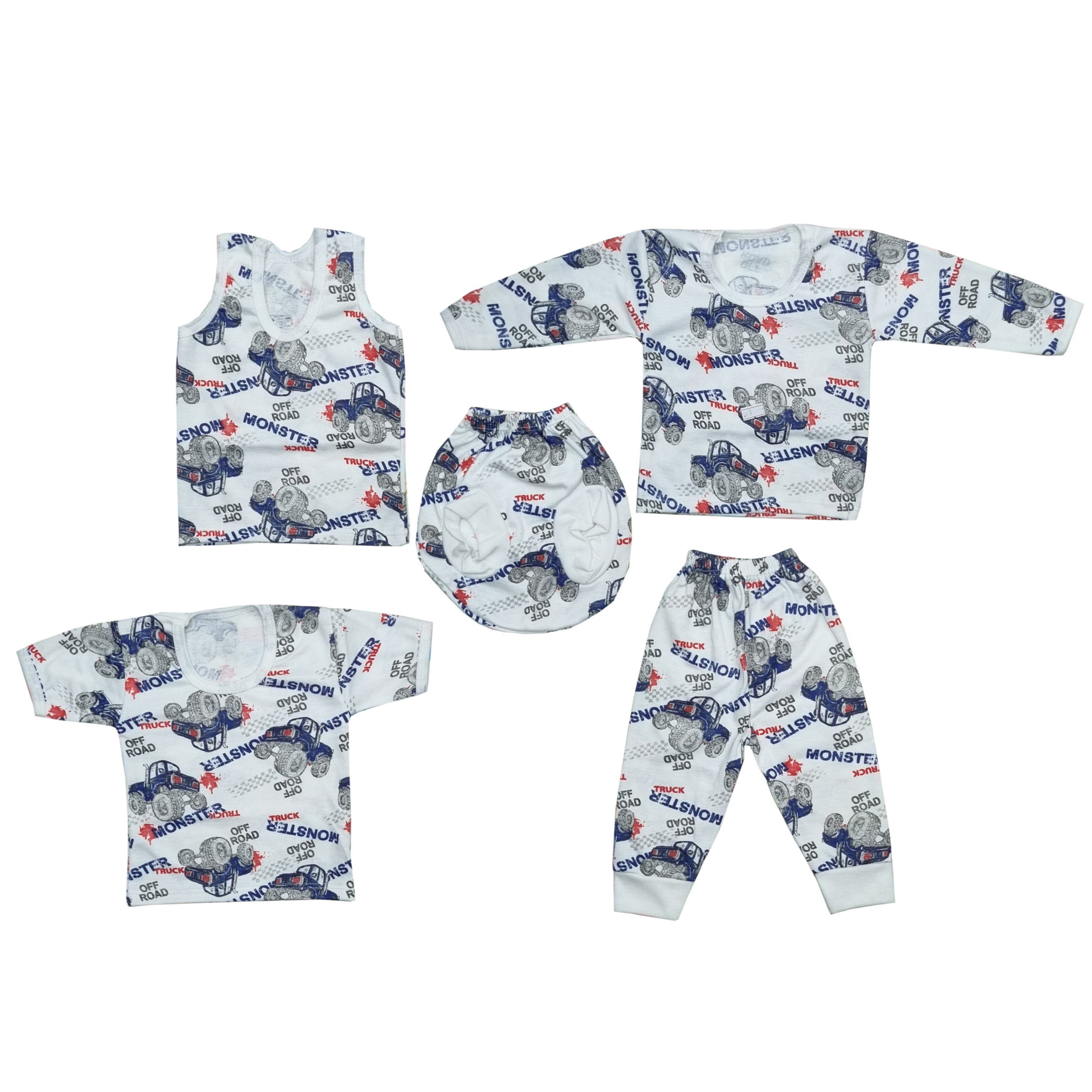 این محصول ست 5 تکه برند مهرسام شامل بلوز آستین بلند و کوتاه و رکابی و شلوار و شورت عینکی است. این ست از جنس نخی می باشد که مانع تعریق و حساسیت می گردد. کالا طرح ماشین و در 3 سایز : 1 مناسب 0 تا 3 ماهگی/ 2 مناسب 3 تا 5 ماهگی / 3 مناسب 5 تا 10 ماهگی موجود است. جدول سایزبندی به خرید شما کمک می کند.شما می توانید با کلیک بر روی لینک (( ست لباس نوزاد )) مدلهای دیگر و لینک (( ست پنج تکه نوزادی )) رنگهای دیگر و تنوع های مختلف این محصول را مشاهده کنید.