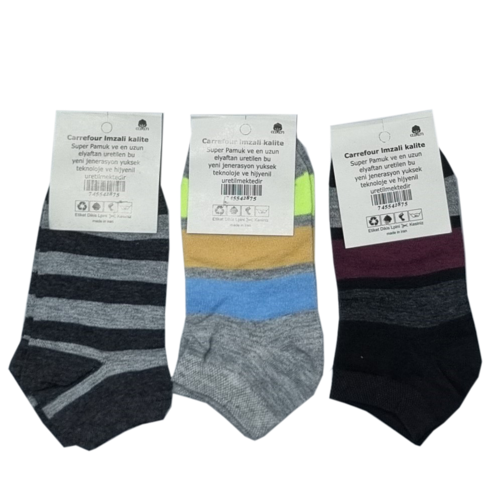 این محصول جوراب مچی طرح راه راه است.نخ به کار رفته از تعریق و بوی بد جلوگیری میکن و برای سایز پا تا شماره 40 مناسب است . این محصول در بسته 3 جفتی بسته بندی شدهشما می توانید با کلیک بر روی لینک (( جوراب مردانه )) مدلهای دیگر و لینک (( جوراب اسپرت مردانه )) رنگهای دیگر و تنوع های مختلف این محصول را مشاهده کنید.