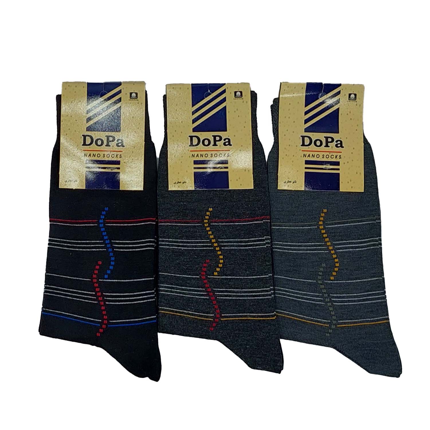 این کالا جوراب مردانه محصول تولیدی دوپا از جنس پلی آمید و نخ است ، دارای کشسانی و ضخامت خوبی است. که در 3 جفت در رنگ مشکی ،طوسی سیر و ذغالی(دودی) بسته بندی شده ساق جوراب متوسط است و فری سایز است.شما می توانید با کلیک بر روی لینک (( جوراب مردانه )) مدلهای دیگر و لینک (( جورابی کمانی )) رنگهای دیگر و تنوع های مختلف این محصول را مشاهده کنید.