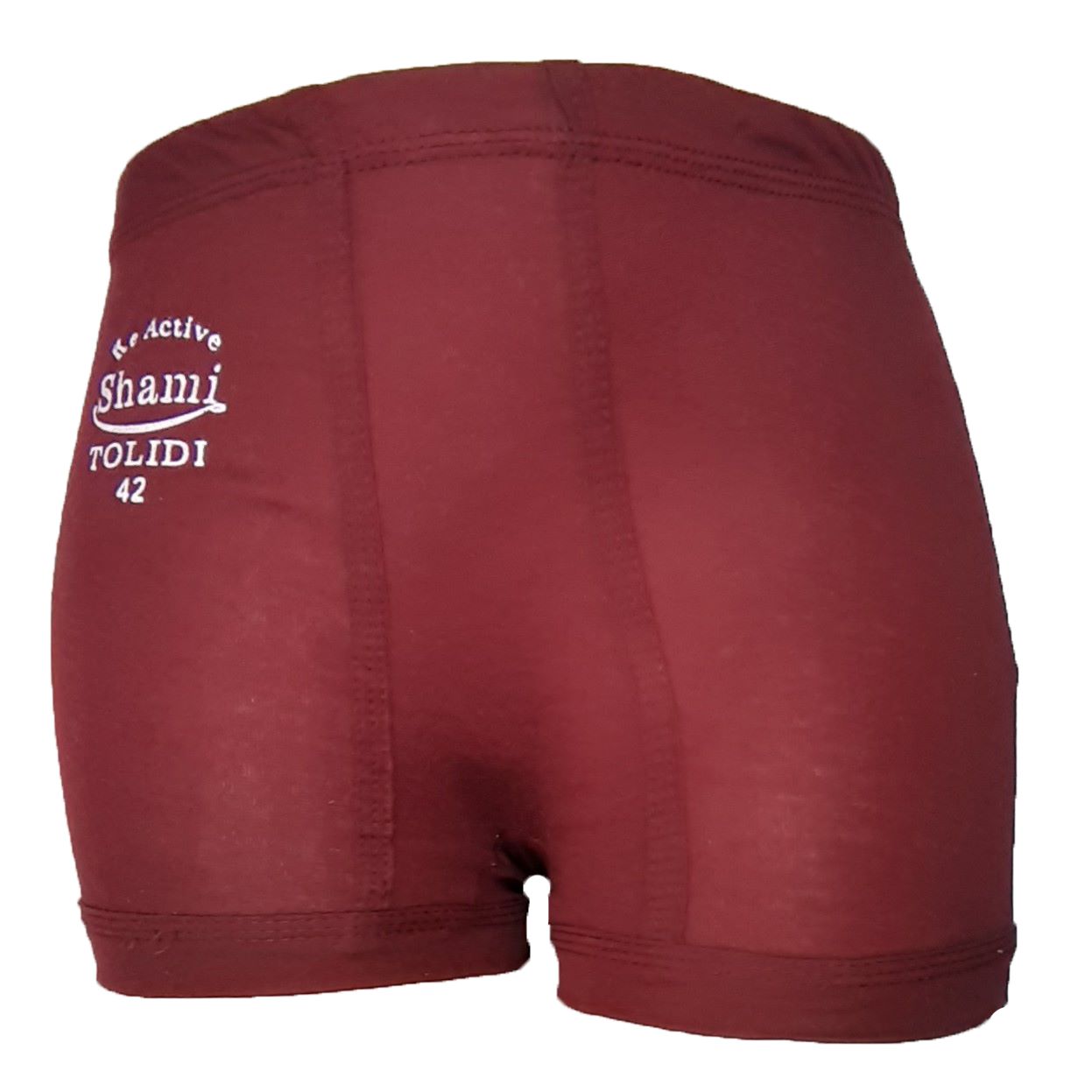 این محصول شورت پادار پسرانه از برند شامی به رنگ زرشکی است و از نخ پنبه با کیفیت تولید شده که باعث احساس راحتی و عدم حساسیت و عدم تعریق میگردد. دور کمر آن هم با کش زیادی می آید و دور دهن پای آن هم دوخت تنها و بدون کش است که باعث اذیت نمی شود. در 2 سایز (42) 9-11 سال/(46) 13 تا 15 سال موجود است. همچنین محصول قواره آزاد است.شما می توانید با کلیک بر روی لینک (( شورت پسرانه )) مدلهای دیگر و لینک (( شورت پادار شامی پسرانه )) رنگهای دیگر و تنوع های مختلف این محصول را مشاهده کنید.