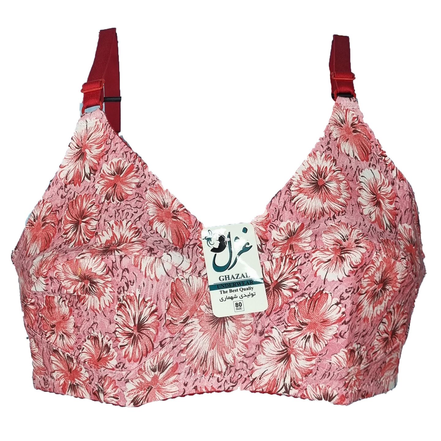 سوتین زنانه غزل مدل سوپر نخ طرح گل سرخ کد 1897