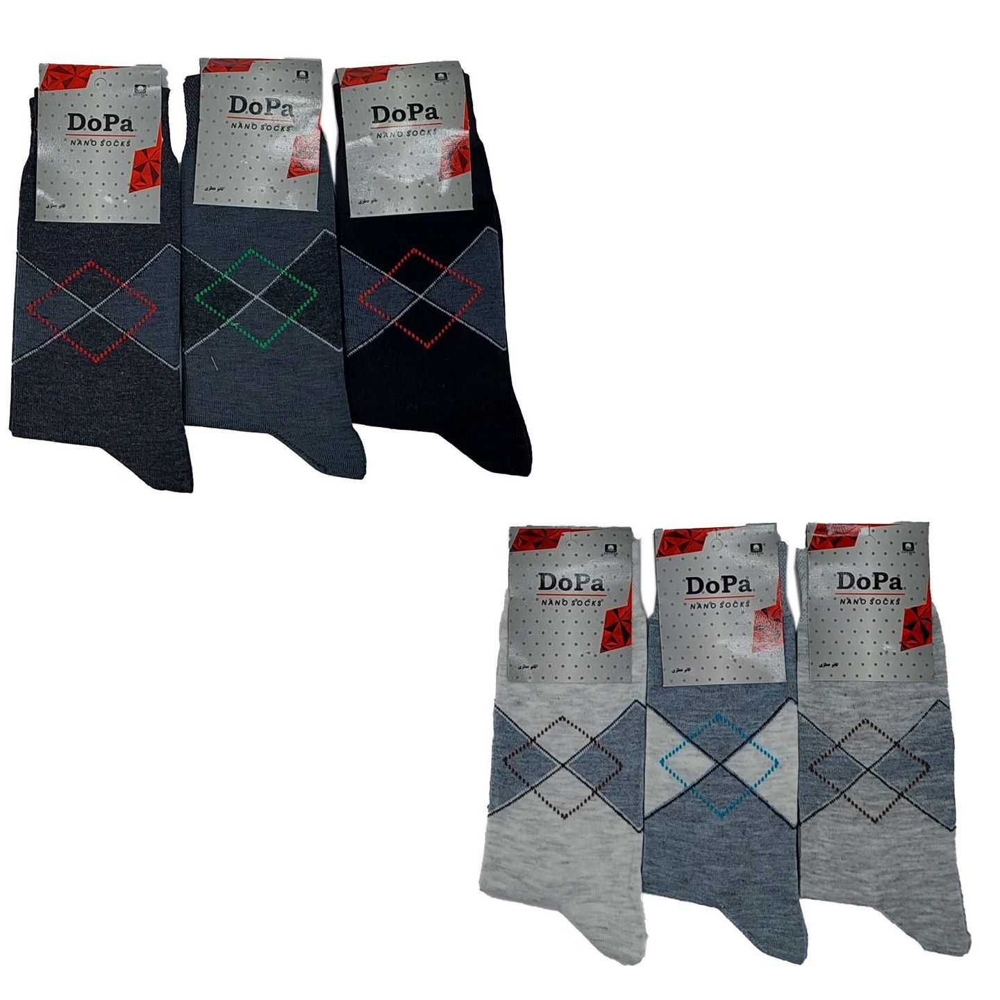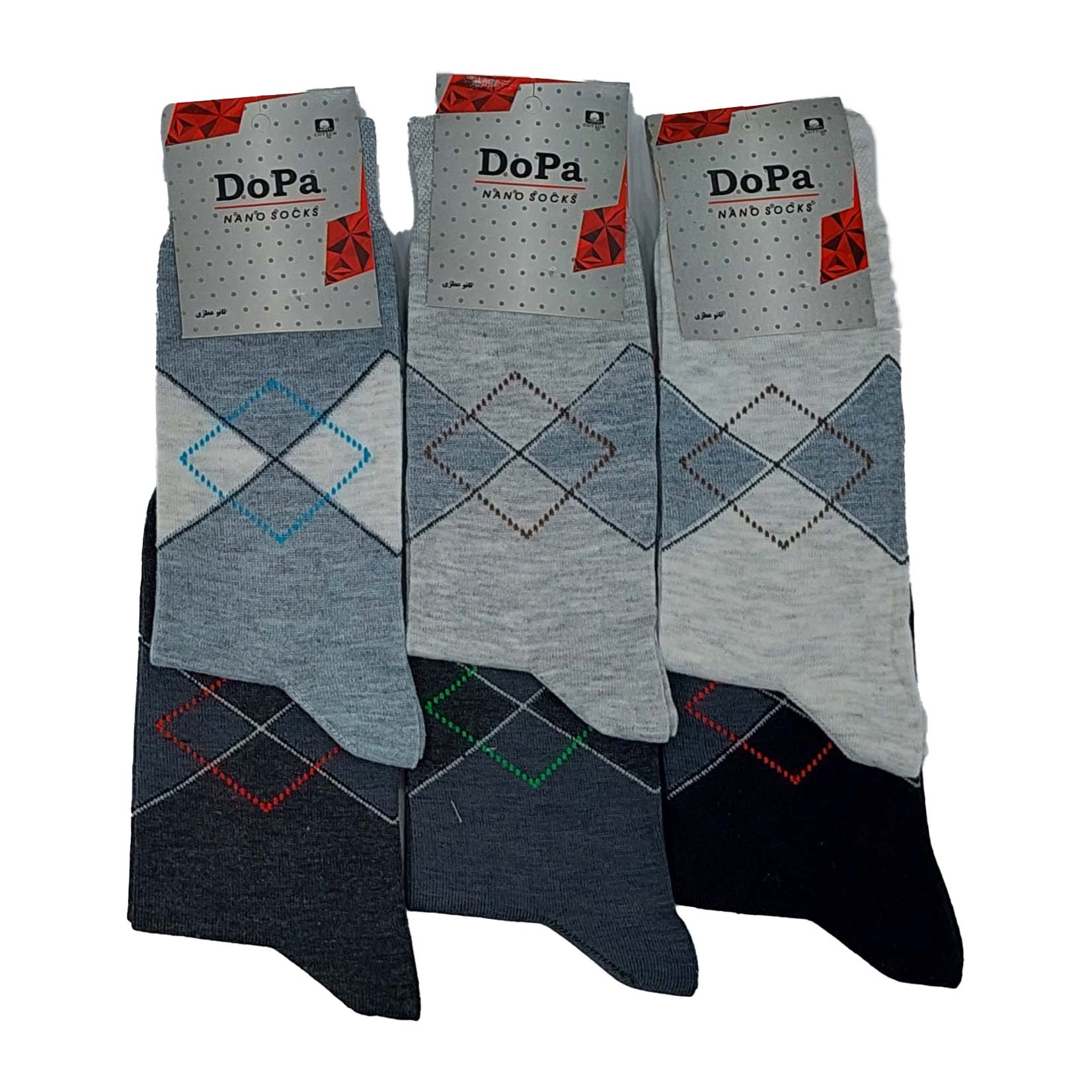 این کالا جوراب مردانه محصول تولیدی دوپا از جنس پلی آمید و نخ است ، دارای کشسانی و ضخامت خوبی است که در 6 جفت در رنگ ابروبادی (از سفید کمی سیر تر) و طوسی روشن و طوسی متوسط و مشکی ،طوسی سیر و ذغالی(دودی) بسته بندی شده ساق جوراب متوسط است و فری سایز استشما می توانید با کلیک بر روی لینک (( جوراب مردانه )) مدلهای دیگر و لینک (( جوراب لوزی )) رنگهای دیگر و تنوع های مختلف این محصول را مشاهده کنید.