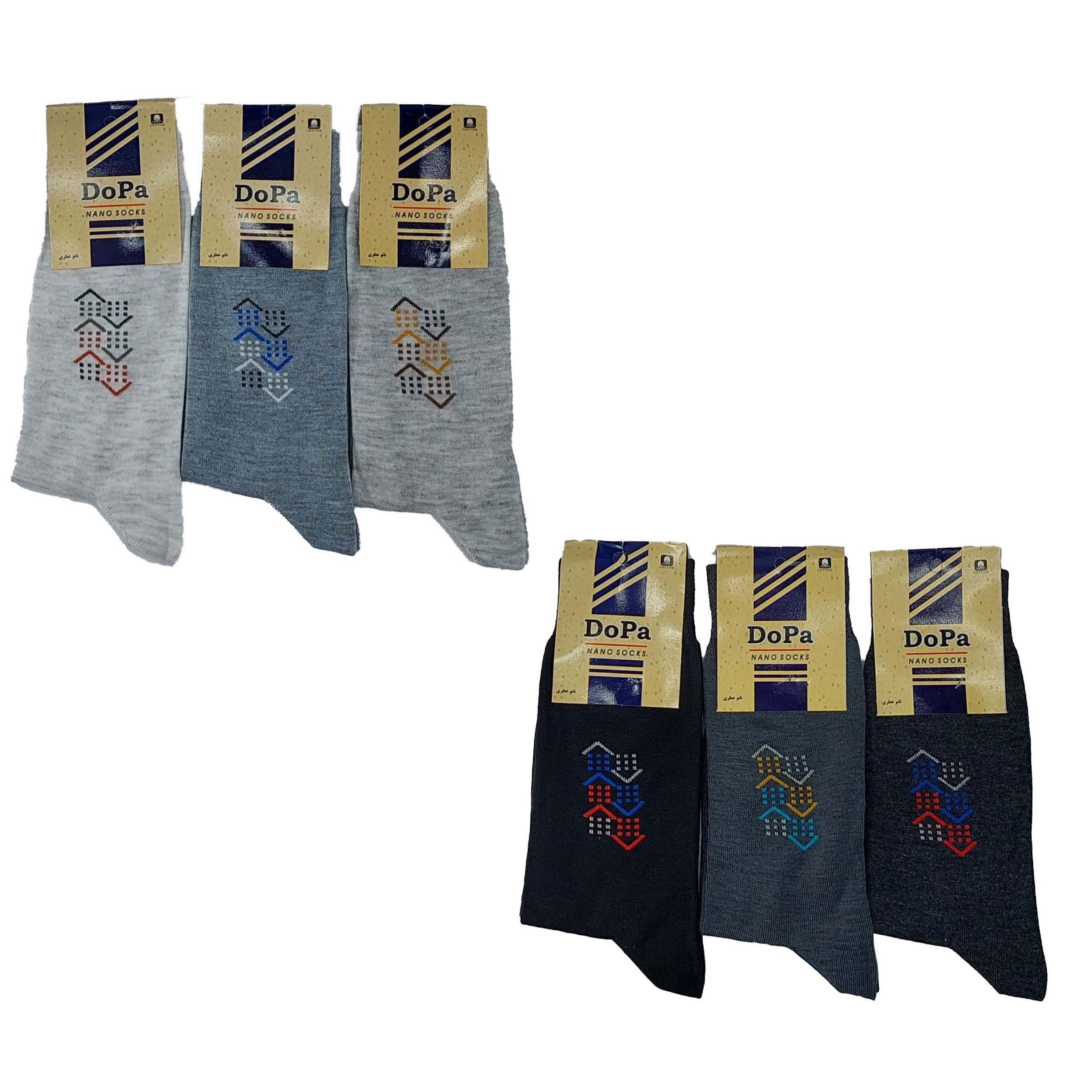 این کالا جوراب مردانه محصول تولیدی دوپا از جنس پلی آمید و نخ است، دارای کشسانی و ضخامت خوبی است , در 6 جفت در رنگ ابروبادی (از سفید کمی سیر تر) و طوسی روشن و طوسی متوسط و مشکی ،طوسی سیر و ذغالی(دودی) بسته بندی شده. ساق جوراب متوسط است و فری سایز است.شما می توانید با کلیک بر روی لینک (( جوراب مردانه )) مدلهای دیگر و لینک (( جوراب خانه )) رنگهای دیگر و تنوع های مختلف این محصول را مشاهده کنید.