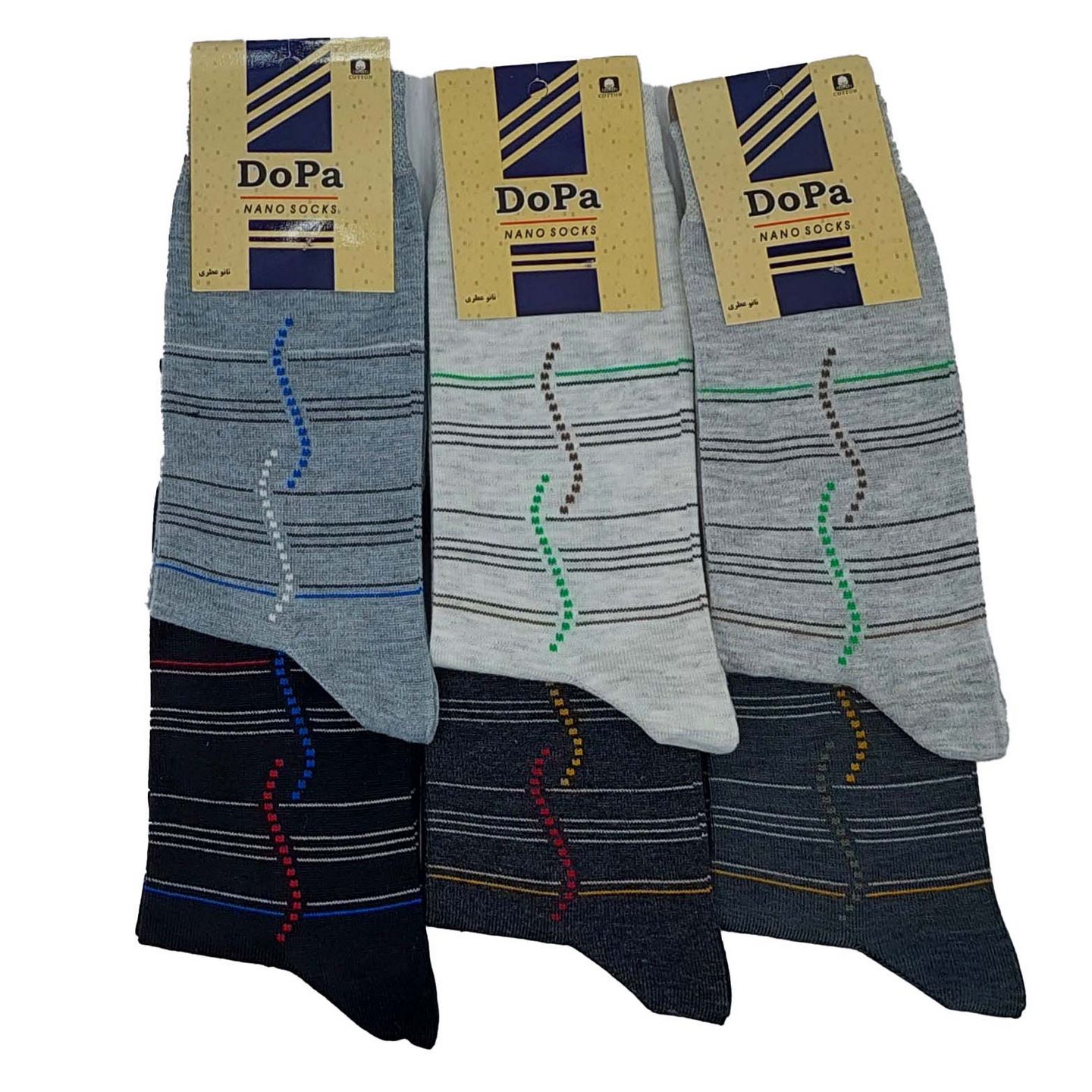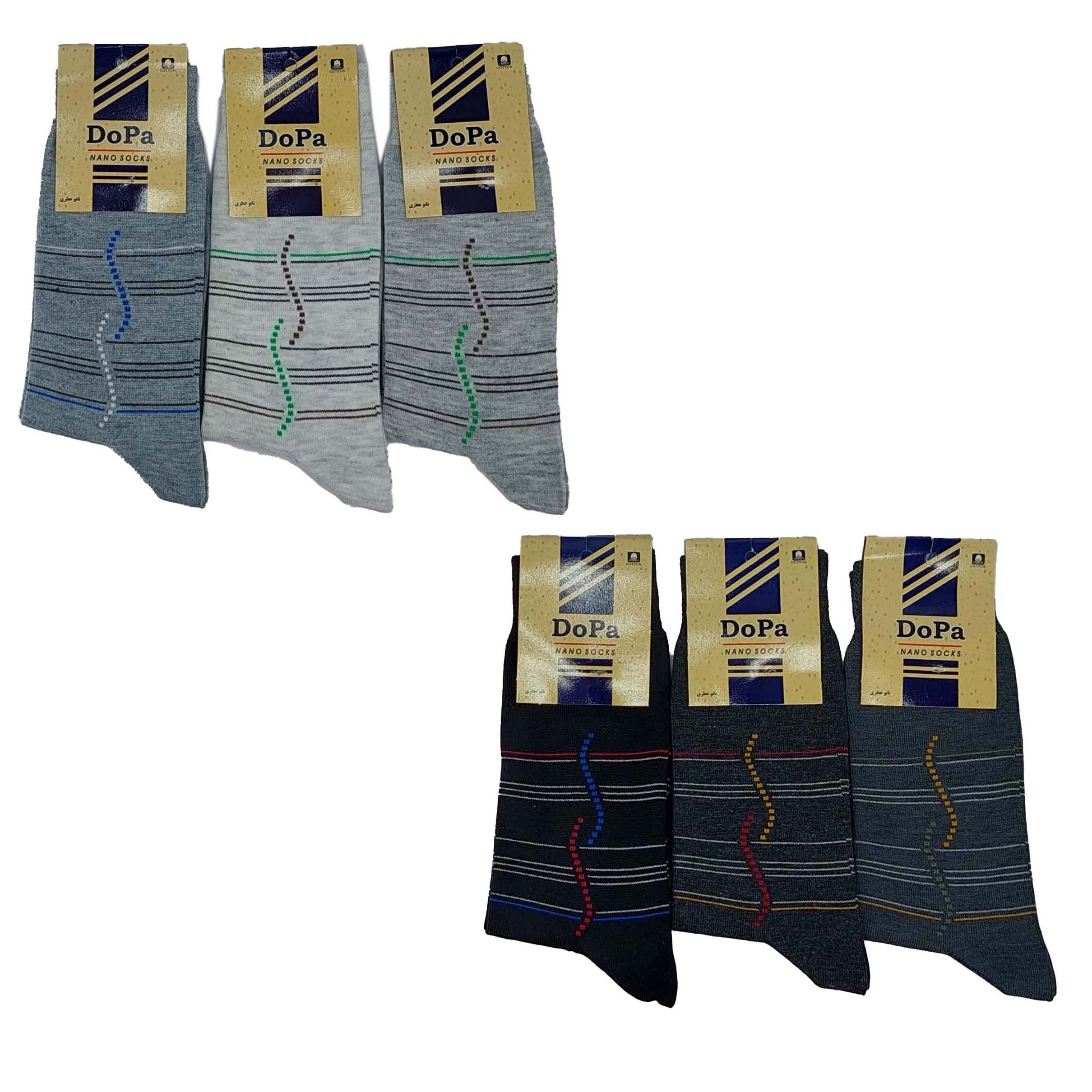 این کالا جوراب مردانه محصول تولیدی دوپا از جنس پلی آمید و نخ است، دارای کشسانی و ضخامت خوبی است که در 6 جفت در رنگ ابروبادی (از سفید کمی سیر تر) و طوسی روشن و طوسی متوسط و مشکی ،طوسی سیر و ذغالی(دودی) بسته بندی شده. ساق جوراب متوسط است و فری سایز است.شما می توانید با کلیک بر روی لینک (( جوراب مردانه )) مدلهای دیگر و لینک (( جورابی کمانی )) رنگهای دیگر و تنوع های مختلف این محصول را مشاهده کنید.