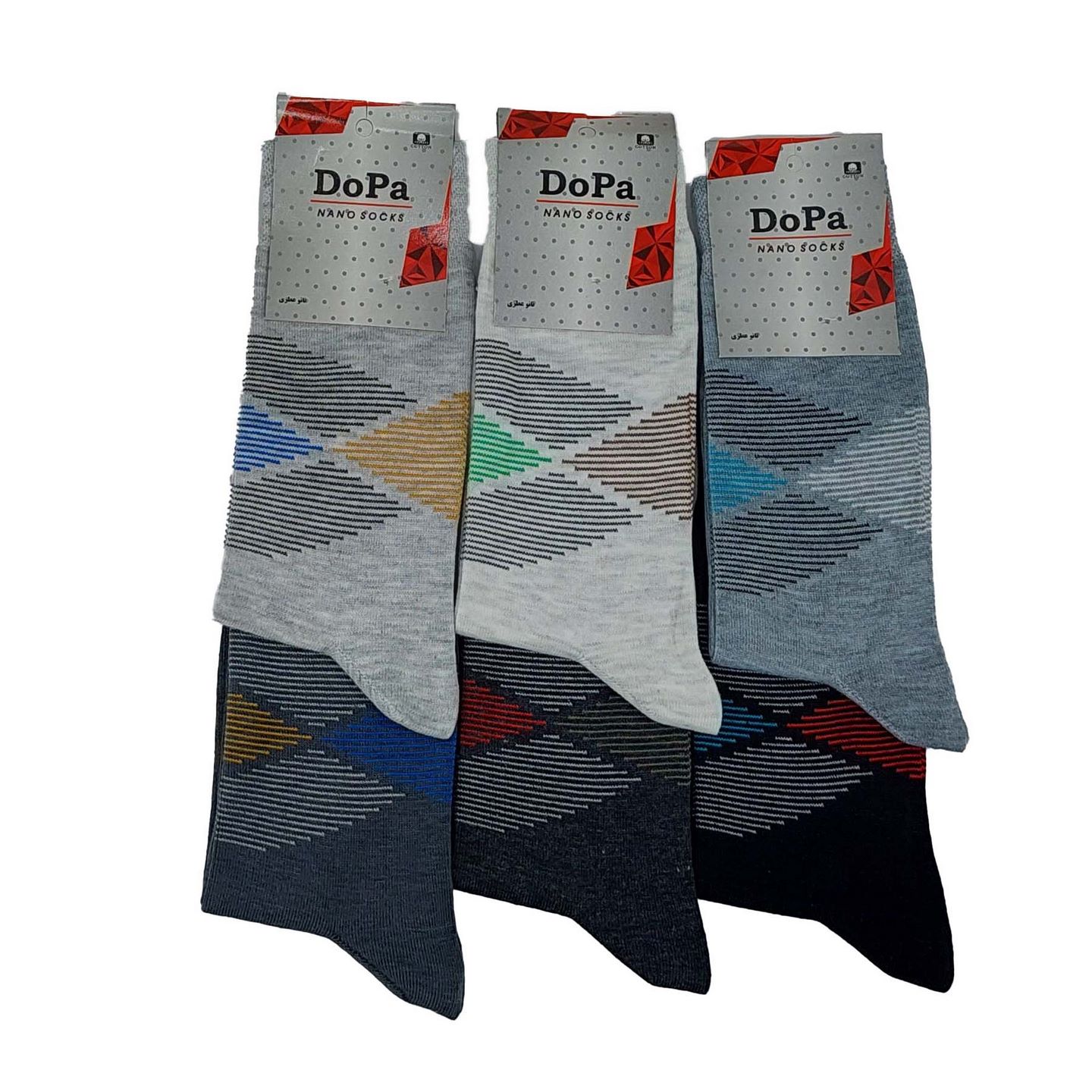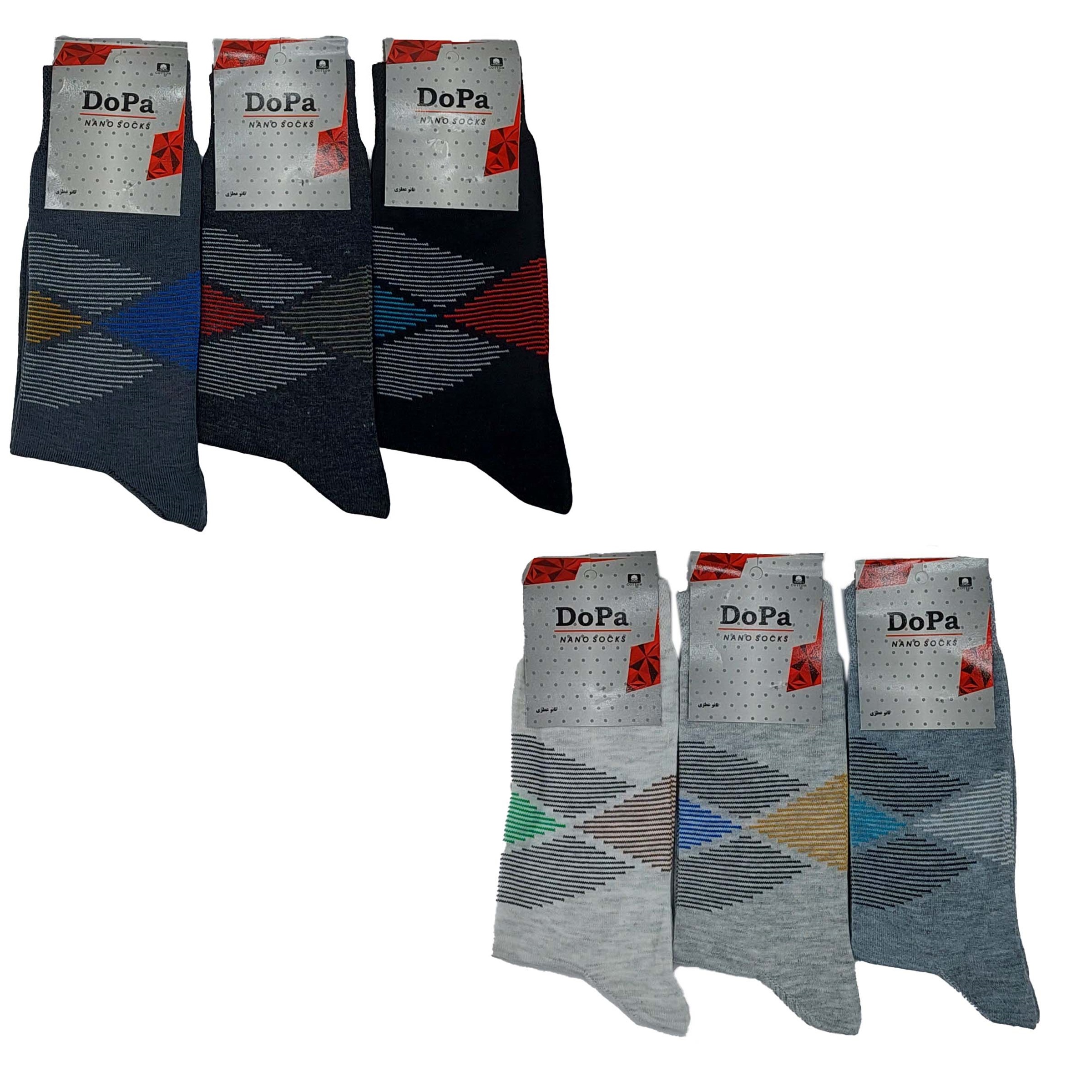 این کالا جوراب مردانه محصول تولیدی دوپا از جنس پلی آمید و نخ است ، دارای کشسانی و ضخامت خوبی است که در 6 جفت در رنگ ابروبادی (از سفید کمی سیر تر) و طوسی روشن و طوسی متوسط و مشکی ،طوسی سیر و ذغالی(دودی) بسته بندی شده ساق جوراب متوسط است و فری سایز استشما می توانید با کلیک بر روی لینک (( جوراب مردانه )) مدلهای دیگر و لینک (( جوراب لوزی خطی )) رنگهای دیگر و تنوع های مختلف این محصول را مشاهده کنید.