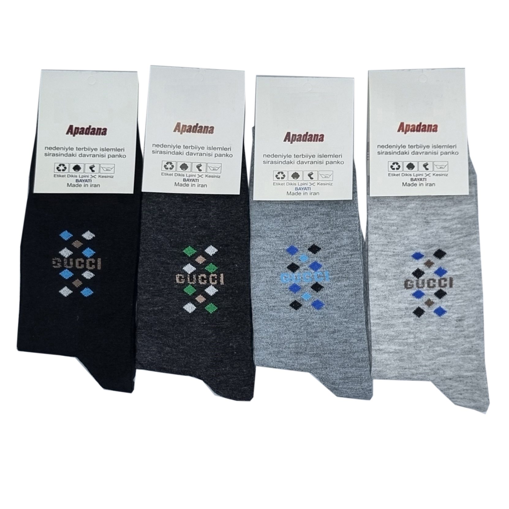 این محصول جوراب مردانه تولیدی آپادانا طرح گوچی است و از جنس نخ تهیه شده و دارای کشسانی و ضخامت خوبی است .این محصول در بسته چهار جفتی در رنگهای مشکی، دودی، طوسی روشن و طوسی سیر بسته بندی شده و فری سایز است.شما می توانید با کلیک بر روی لینک (( جوراب مردانه )) مدلهای دیگر و لینک (( جوراب مجموعه پاسارگاد )) رنگهای دیگر و تنوع های مختلف این محصول را مشاهده کنید.